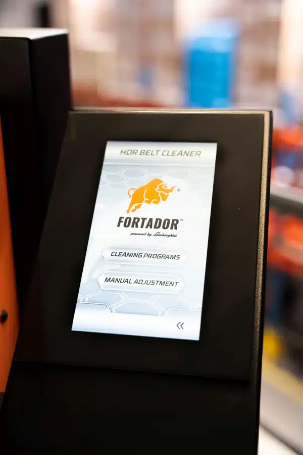 Een belangrijk voordeel van de Fortador Belt Cleaner AI Robot is de volledig autonome inzetbaarheid. De machine kan worden geprogrammeerd om automatisch te starten en te stoppen, bijvoorbeeld tussen shifts of tijdens geplande productwissels.